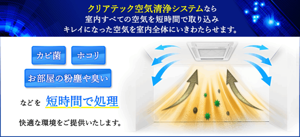 当院では来院いただいている方に安心して通院いただけるよう、待合室・診察室・処置室に【クリアテック社製空気清浄システム】導入いたしました、空気中の汚れや細菌やウイルス等を殺菌して院内の空気感染(新型コロナウイルス、インフルエンザなどの)を予防しています。そのため花粉症などでお悩みの方も当院では快適にお待ちいただけます。また、身体の健康に欠かせないマイナスイオンも豊富に発生させ清潔で安心できる環境を作っております。